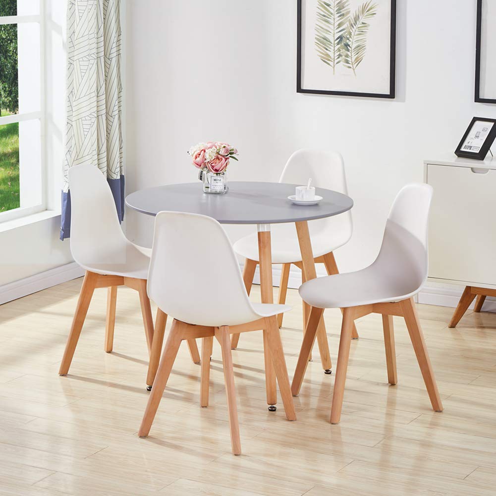 80cm round dining table and 4 chairs set plastic wooden legs study office white.